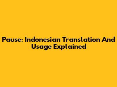 Pause: Indonesian Translation And Usage Explained