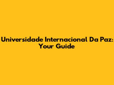 Universidade Internacional Da Paz: Your Guide