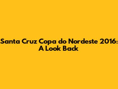What's up, footy fanatics! Let's take a trip down memory lane and rewind to the Santa Cruz Copa do Nordeste 2016 season. This was a seriously exciting chapter for the Coral, as they battled it out in one of Brazil's most passionate regional tournaments. The Copa do Nordeste is more than just a competition; it's a showcase of Northeastern pride, where historic clubs clash with intense rivalries and incredible fan support. For Santa Cruz, 2016 was a year where they aimed to make their mark and bring silverware back to Recife. The air was thick with anticipation, and the campaign was filled with nail-biting matches, stunning goals, and the kind of drama that only Brazilian football can deliver. We're going to dive deep into what made this particular campaign so memorable, from the key players who shone brightly to the unforgettable moments that etched themselves into the club's history.