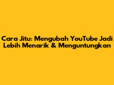 Cara Jitu: Mengubah YouTube Jadi Lebih Menarik & Menguntungkan