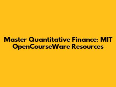 Master Quantitative Finance: MIT OpenCourseWare Resources