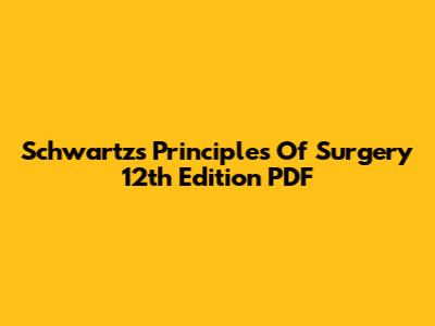 Schwartz's Principles Of Surgery 12th Edition PDF