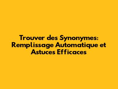 Trouver Des Synonymes: Remplissage Automatique Et Astuces Efficaces