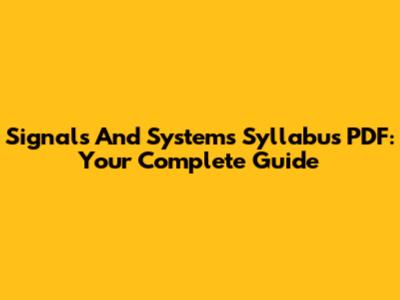 Signals And Systems Syllabus PDF: Your Complete Guide