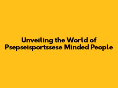 Unveiling The World Of Psepseisportssese Minded People
