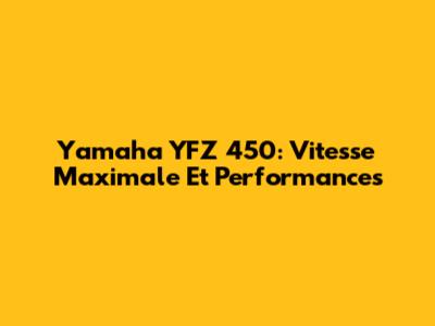 Yamaha YFZ 450: Vitesse Maximale Et Performances