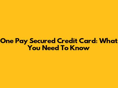 One Pay Secured Credit Card: What You Need To Know
