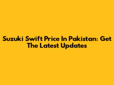 Suzuki Swift Price In Pakistan: Get The Latest Updates
