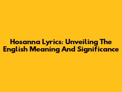 Hosanna Lyrics: Unveiling The English Meaning And Significance