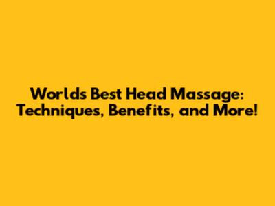 Hey everyone! Ever feel like you just need to unwind and escape the daily grind? Well, you're in for a treat because we're diving headfirst into the world's best head massage! Seriously, guys, this isn't just about a little scalp scratch; we're talking about a full-blown experience that can melt away stress, boost your well-being, and even give your hair a little love. So, let's explore everything from the incredible benefits of head massage to the different head massage techniques you can try, and even where to find a top-notch head massage near me. Buckle up, because your head is about to feel amazing!